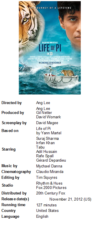 film based on Yann Martel's 2001 novel of the same name. Directed by Ang