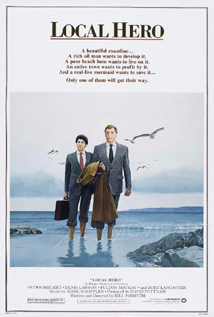Local Hero is a 1983 Scottish comedy-drama film written and directed by Bill Forsyth and starring Peter Riegert, Denis Lawson, Fulton Mackay and Burt Lancaster. Produced by David Puttnam, the film is about an American oil company representative who is sent to the fictional village of Ferness on the west coast of Scotland to purchase the town and surrounding property for his company.
