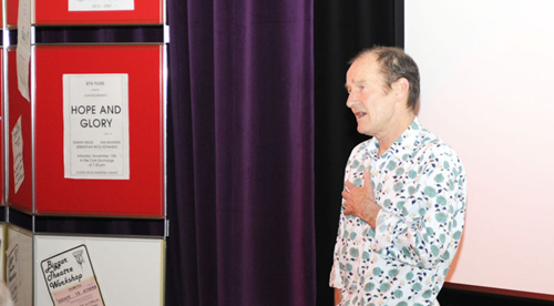 David Hayman speaking at our opening night, with the poster for the original showing of Hope and Glory in 1988